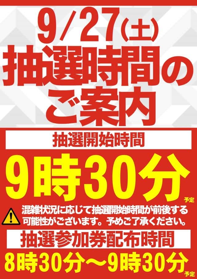 9月16日(月)賞品入荷!10:00オープン!!ご来店お待ちしております!