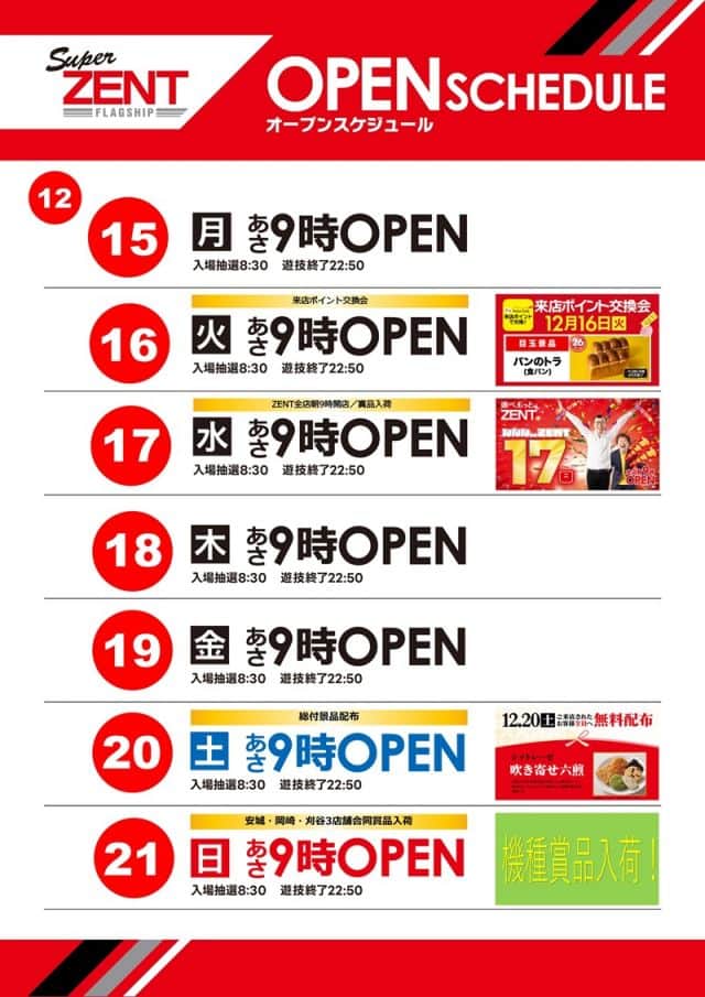 ZENT全店朝9時開店!!