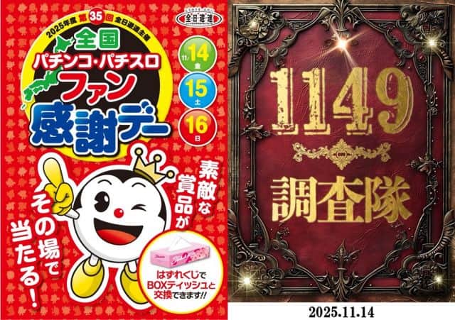 11月17日(月)朝9時開店☆総付景品配布予定☆
