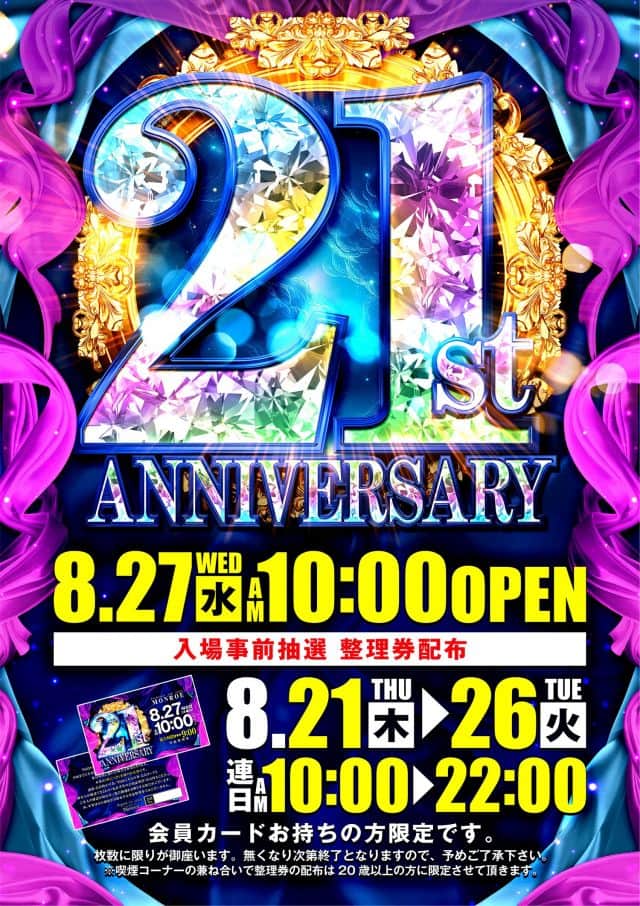 もっとスマートに!もっと遊びやすく!スマスロ・スマパチ一新!スマスロコーナーナンバーランプVERSIONUP!そしてスマパチコーナーは、更にエリア拡大へ!勿論気になる最新機種も一挙導入!新時代へのカウントダウンが始まりましたよ!24日は9:40より入場順番抽選実施!お時間お間違いなく!