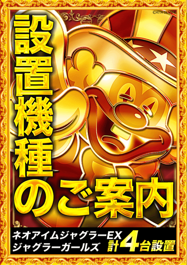 設置機種案内:ネオアイムジャグラー/ジャグラーガールズ 計4台