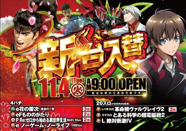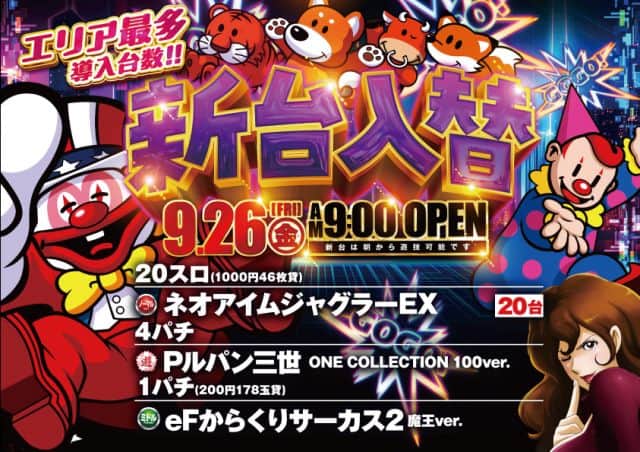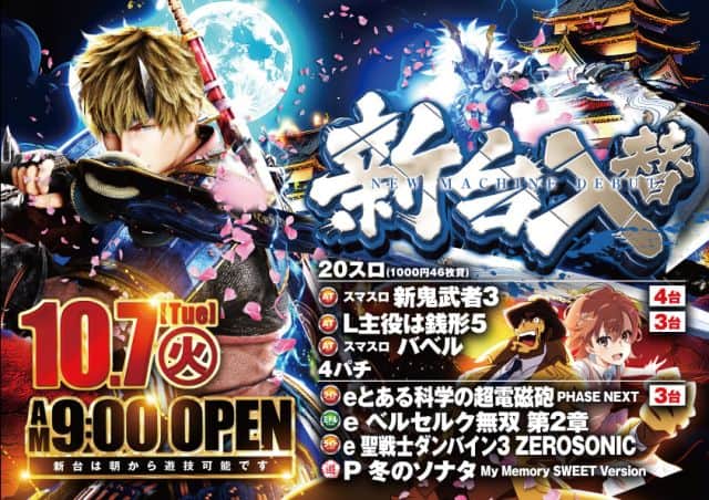 9月9日9時OPEN☆新台入替☆ご来店お待ちしております!