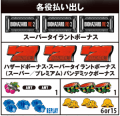 今作のハザードラッシュ(HR)は低純増区間のHRと高純増区間の擬似ボーナスを行き来するゲーム性で、初当り時は必ずボーナス(約100枚獲得)からスタートする。