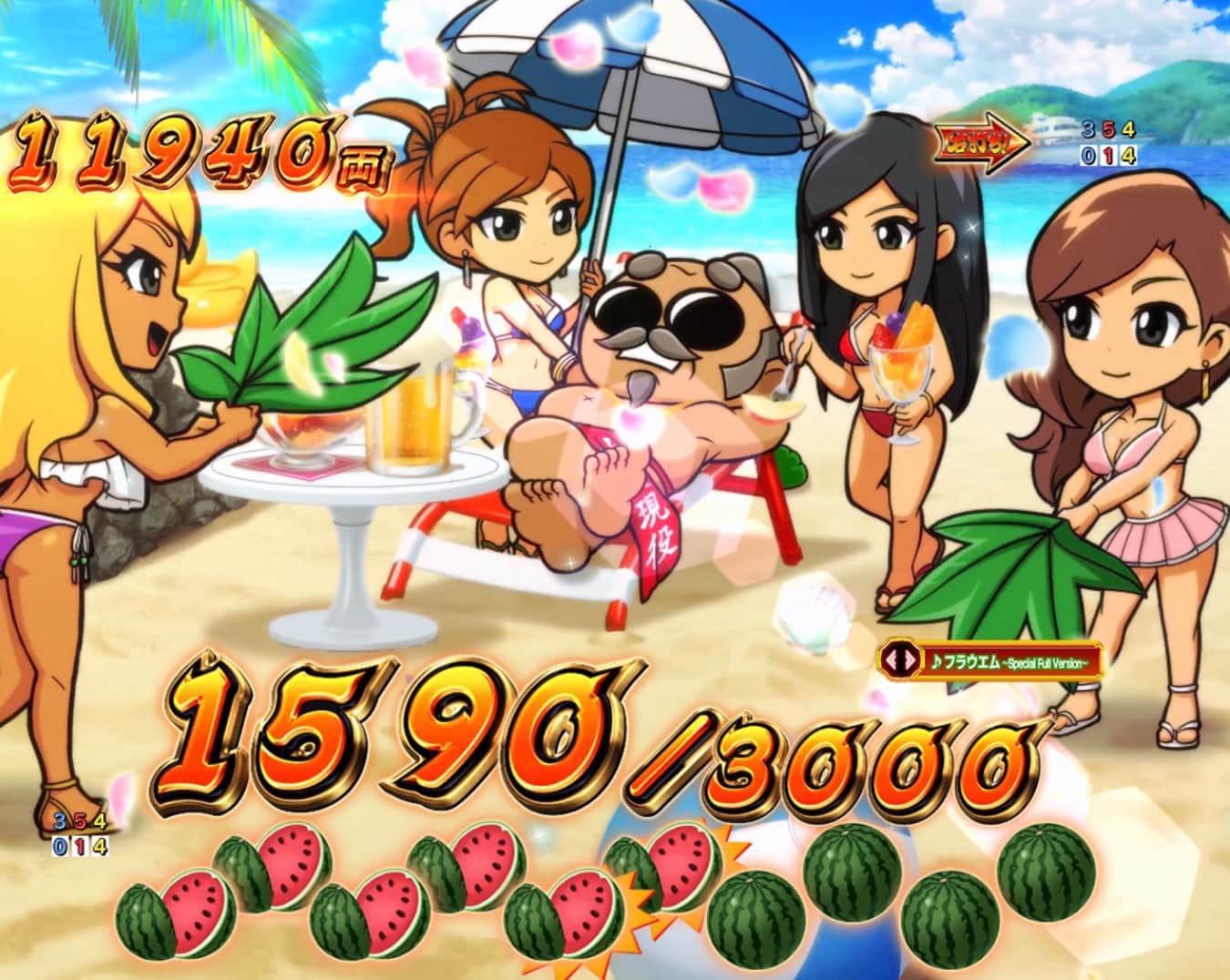 目玉である「大盤振舞3000ボーナス」中は、約25%で発生する「1G連チャレンジ」成功で6000個以上の出玉を獲得可能。