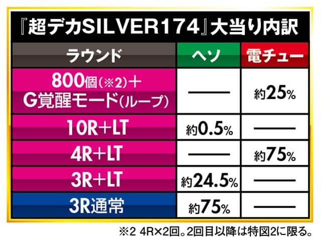 | 図柄揃い確率 (右打ち時実質) | 約174.9分の1 (約15.1分の1) | |