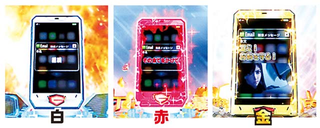 保留は赤で大チャンス、金なら激アツだ。またスマホ保留に変化した場合も赤や金に変化すれば期待大!