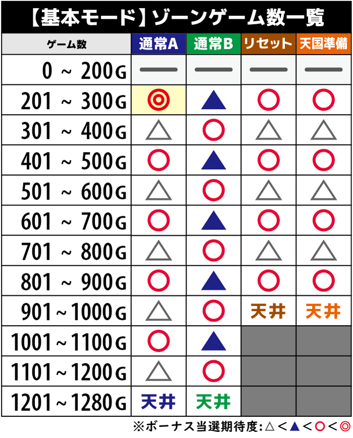 通常A移行時は3回に1回以上の割合で規定ゲーム数が200G台になるため、連チャン抜け後の台などをゾーン狙いで打つのも有効な戦略だ。