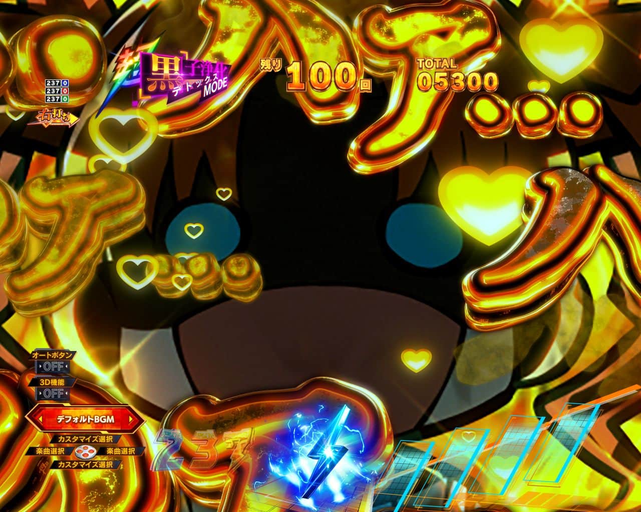 ![]() 黒子浄化(デトックス) モード | 背景や息遣いの 文字色が変化するほど 期待度アップ |