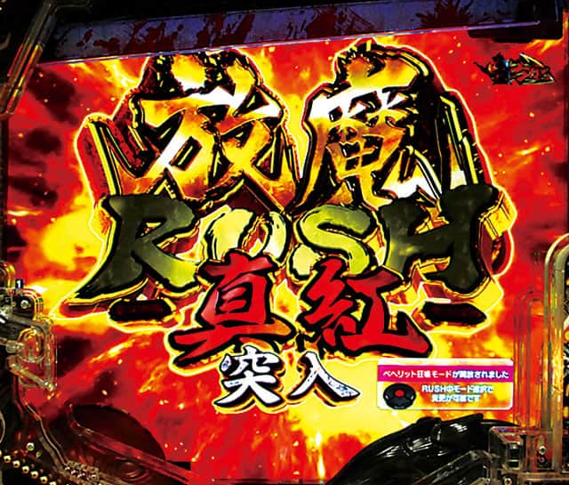 通常時図柄揃いの約75%で突入。ここで一度大当りを引ければ、LTの「放魔RUSH真紅」に突入する。