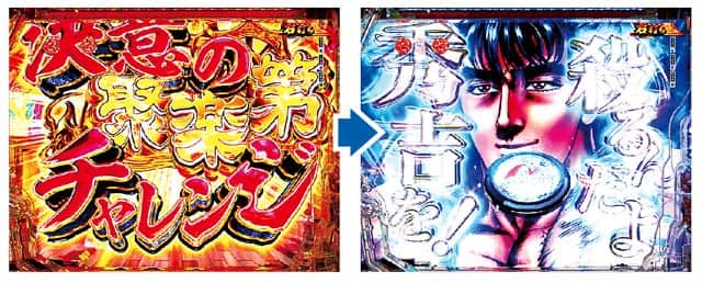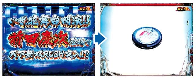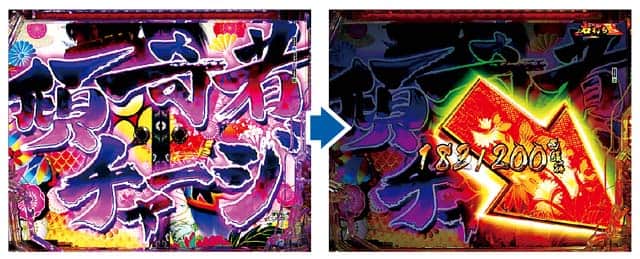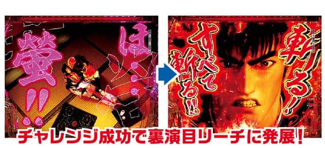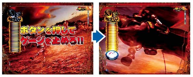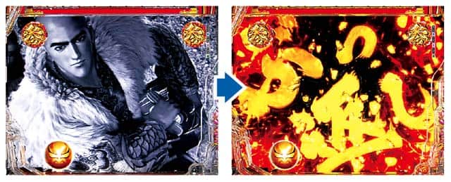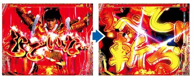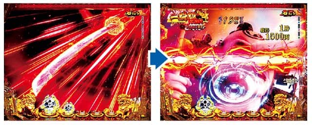 超天下無双RUSH中の大当り後に発生。失敗は10R、成功で10R×4回というヒリツキ間違いナシのジャッジ演出だ。大当り後は天下無双RUSHに移行(ごくマレに超RUSHに移行)する。
