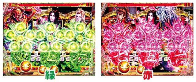 初当りの大半に絡む先読み予告で、緑でチャンス、赤まで達すれば初当りが目前に迫る!