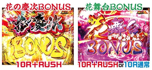 図柄揃い大当りの大半は花舞台BONUS。チャレンジ演出でRUSH=LT発動の有無が決まる!
