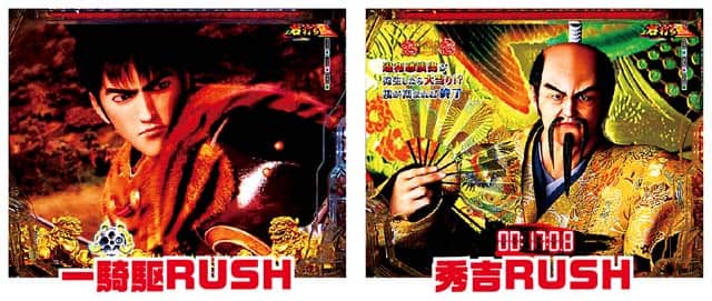 RUSHは伝統の城門演出が楽しめる「一騎駆RUSH」と、違和感発生で超激アツと化す「秀吉RUSH」が選択可能だ。
