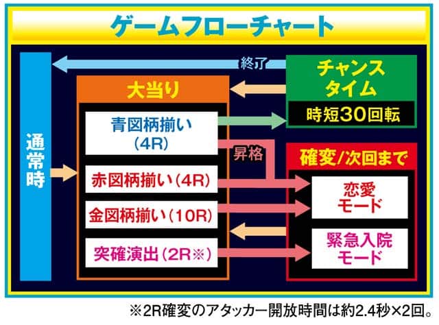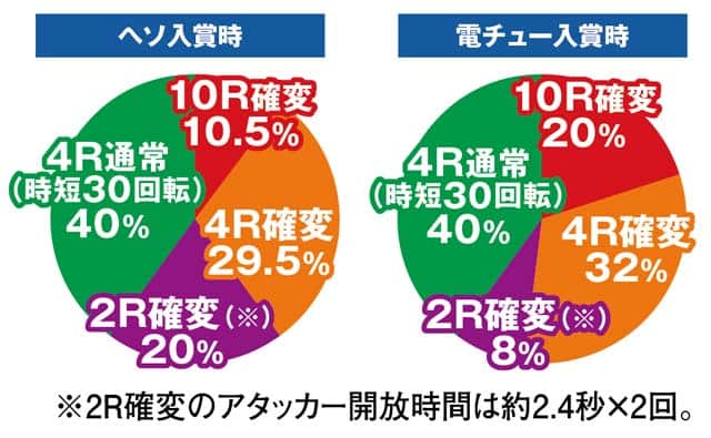 | 払い出し出玉 | 約1000個(10R) 約400個(4R) 右アタッカー10C |