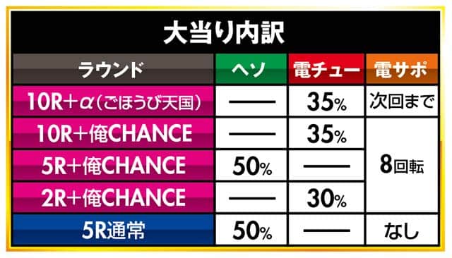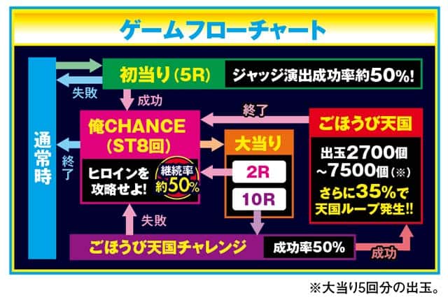 | 大当り確率 (右打ち時実質) | 約159.9分の1 (約12.0分の1) | |