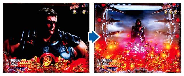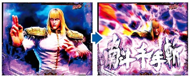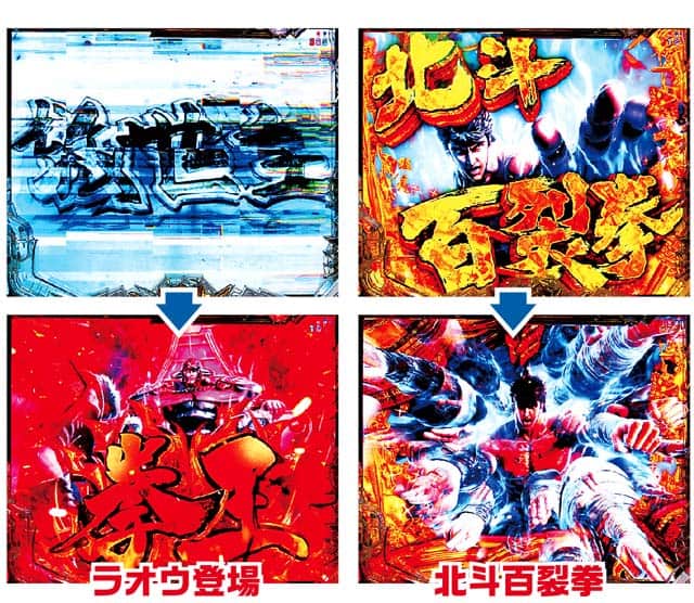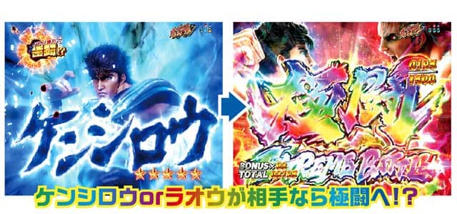 図柄揃い時の大半で発生。ラウンドバトルはラオウ、ケンシロウ、トキの3種類の演出が選択可能だ。