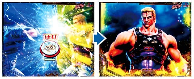 いわゆるチャージ演出(出玉約300個)だが、拳王が覚醒すれば約1500個の出玉を上乗せした上でLTが発動!!