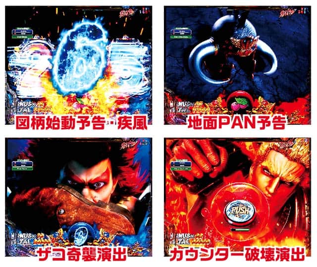 RUSHはラオウが主役の拳王RUSHと、ケンシロウによる救世主モードの2種類。さらに両モードともに「王道」「保留告知」「一発告知」の3タイプが選択可能だ。