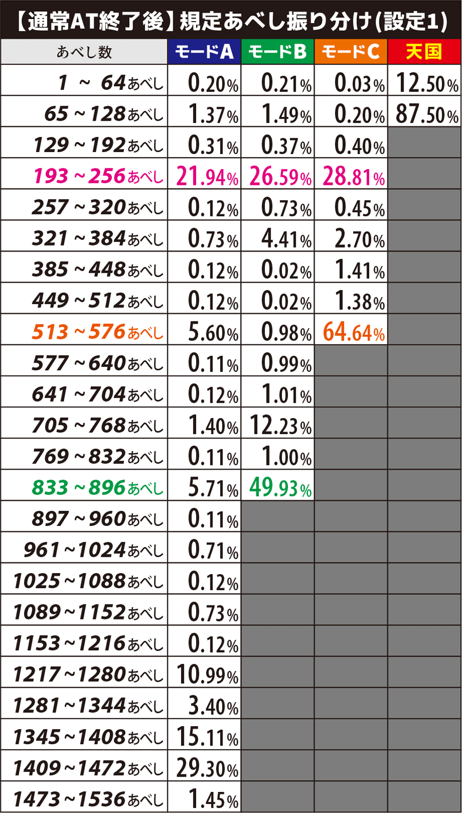 193~256あべしはモードA·B·C共通で振り分けが濃くなっているため、狙える状況では積極的に狙っていきたい。