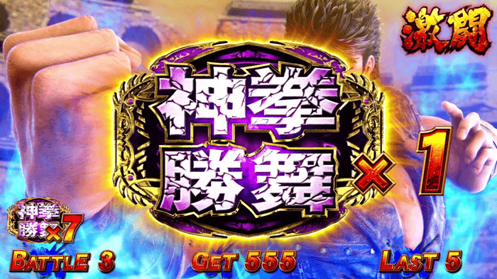 裏神拳勝舞は上位AT中専用の神拳勝舞で、通常AT中よりも1Gあたりの勝利期待度が大幅にアップ。