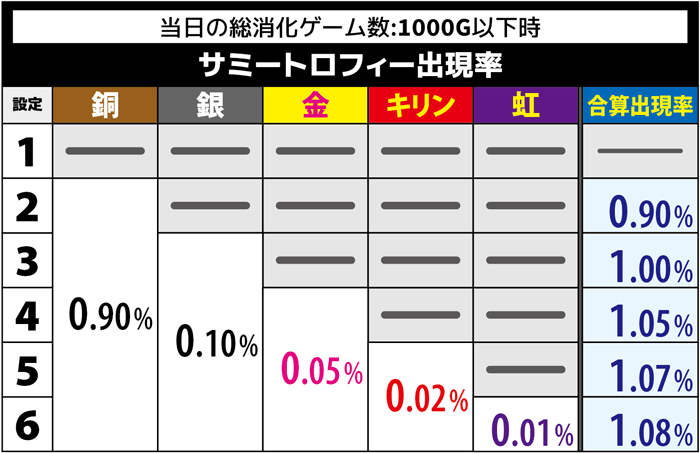 モードBの最大天井である896あべしを超えるハマリがあまりにも目立つ場合は、低設定を疑いたい。