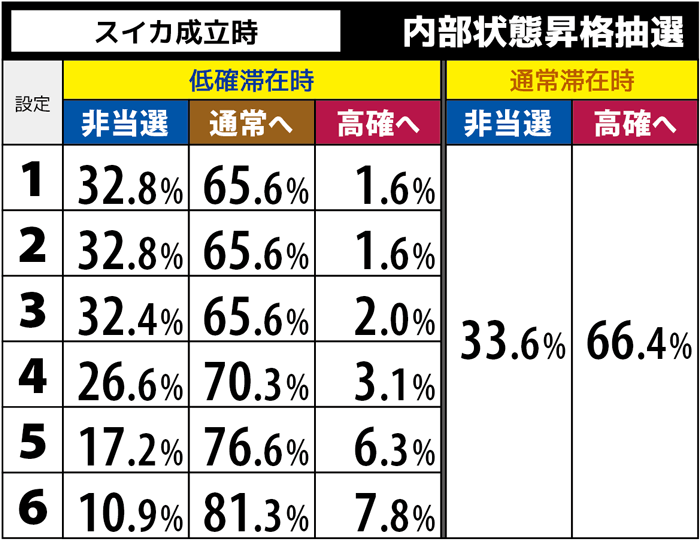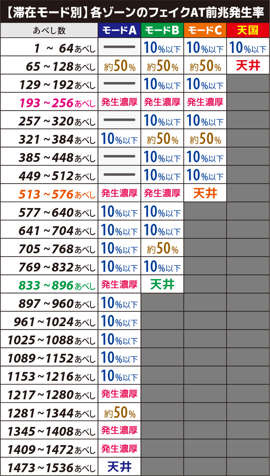 | モード移行率 | 高設定ほどモードB以上に 移行しやすい |