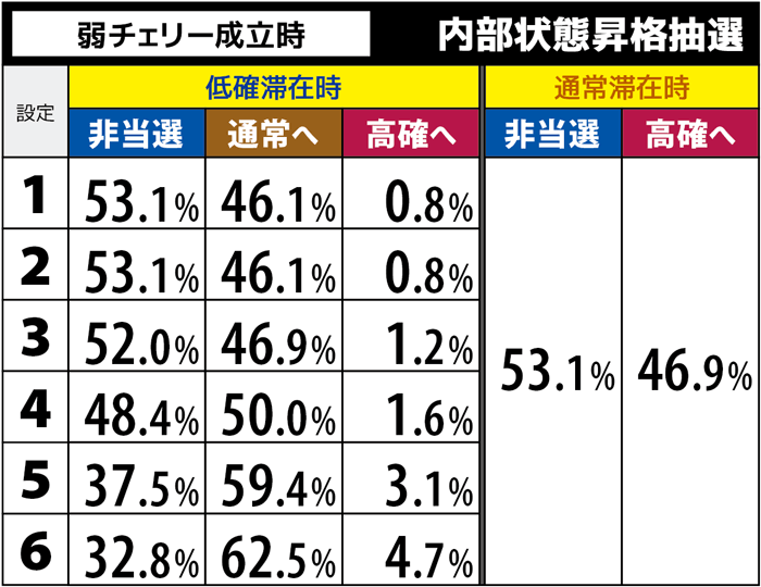 | 弱チェリーと強チェリーの詳細確率 | |