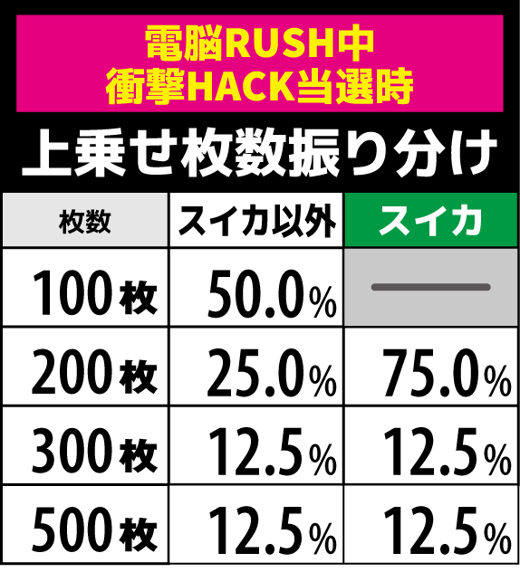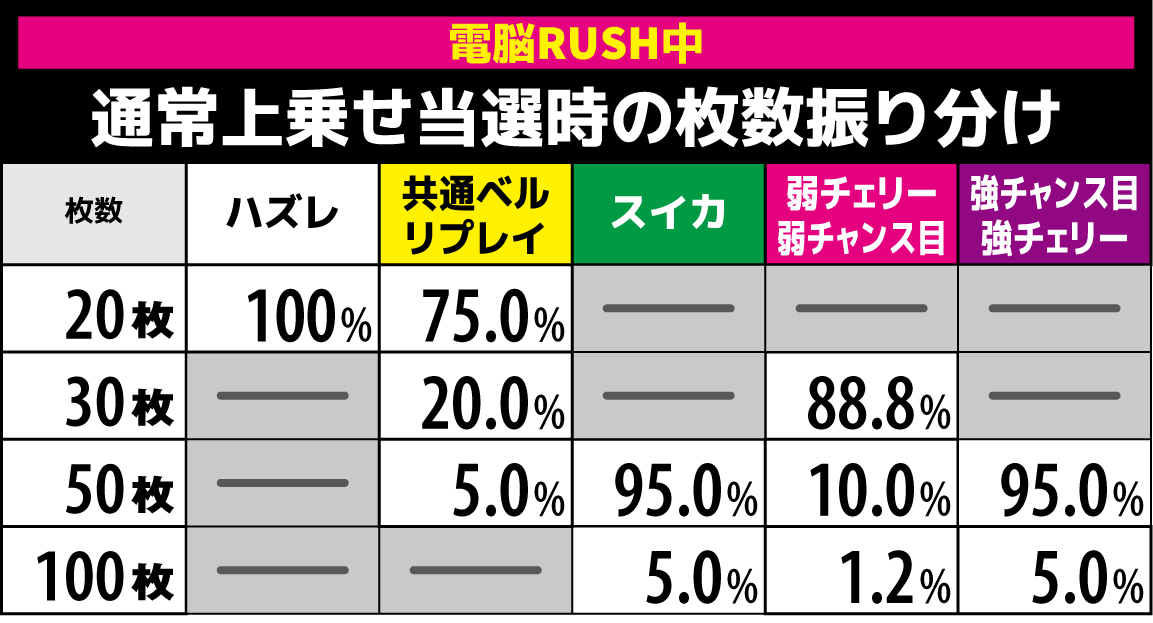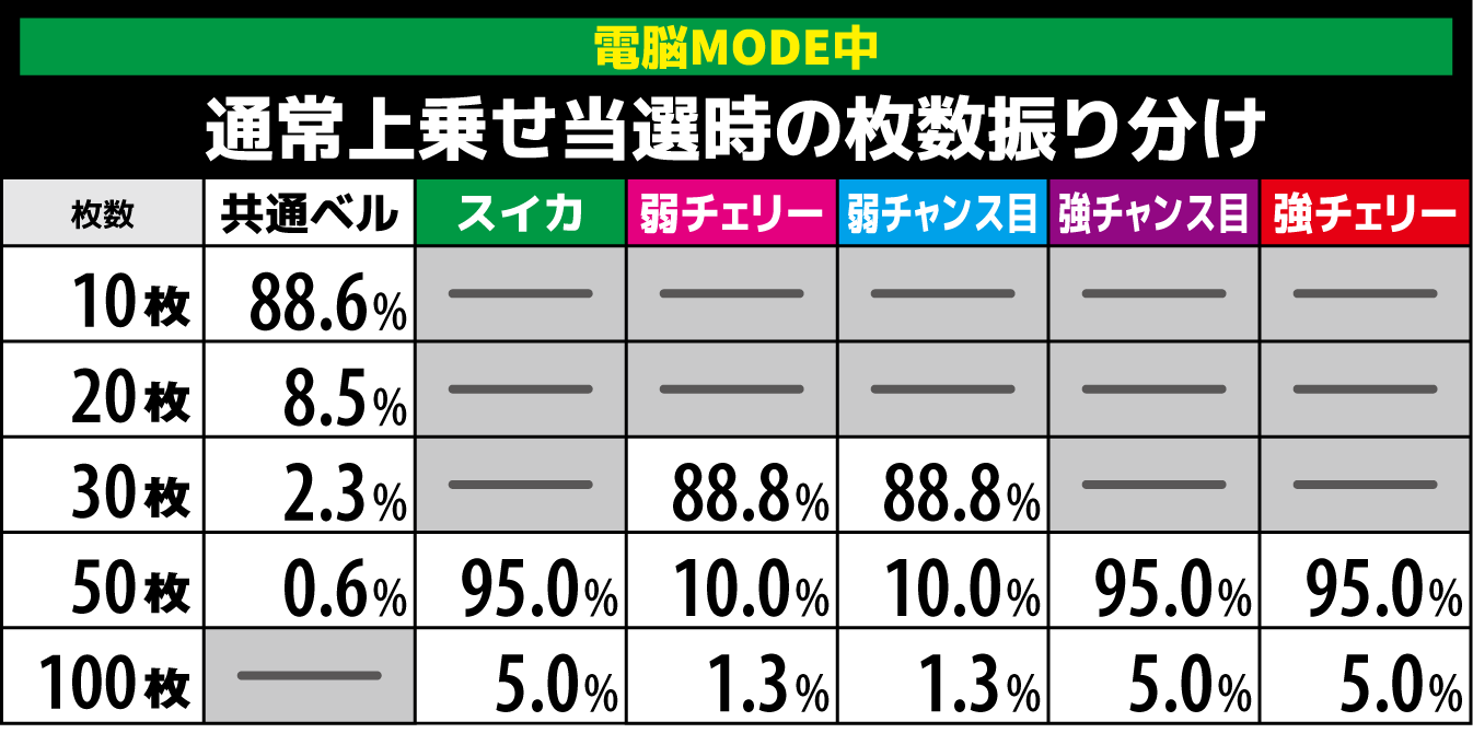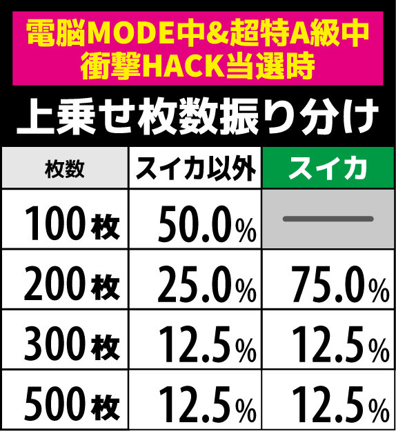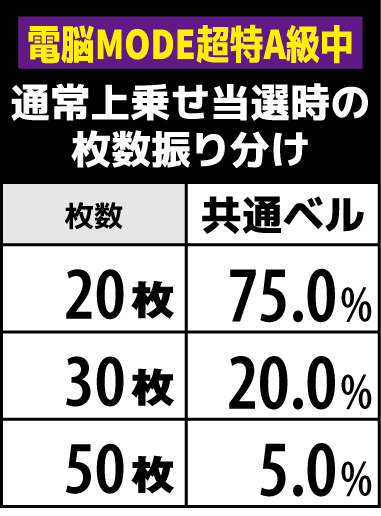上乗せレベル別の上乗せ枚数抽選