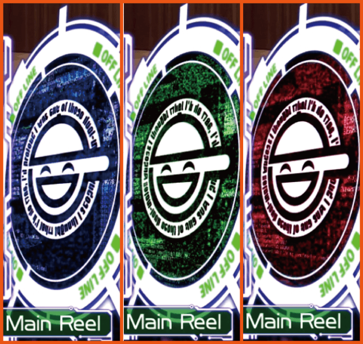 『回胴HACK』(上位AT中は『9th PERSON』)は1G完結の報酬獲得ジャッジでリール全体を笑い男が覆い、次ゲームに狙えカットインが発生。