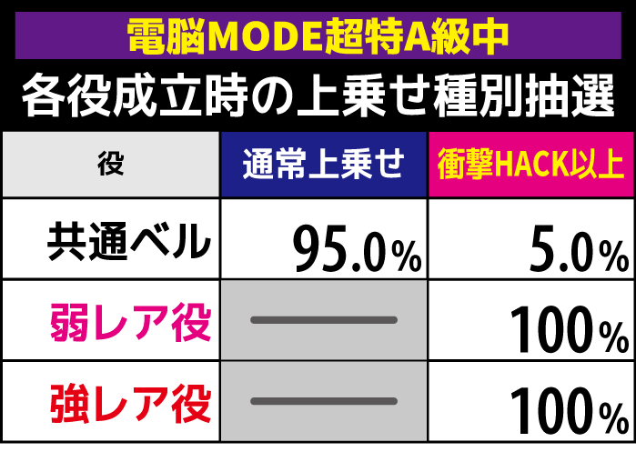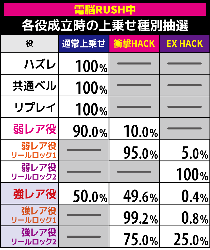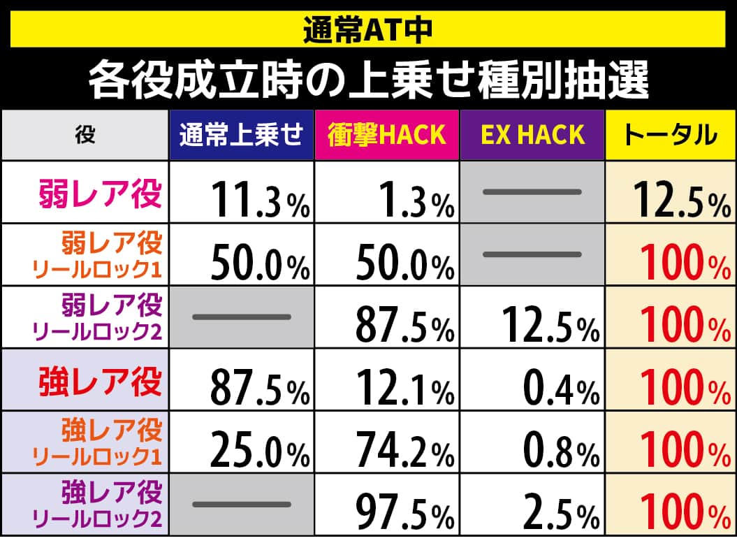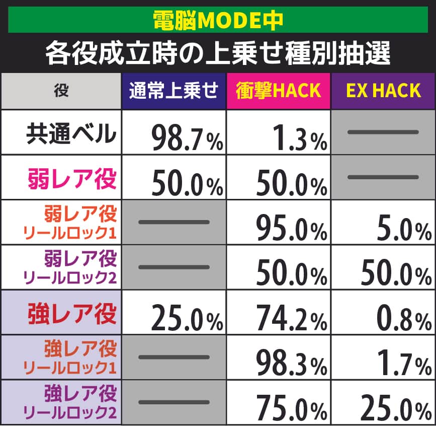 【回胴HACK発生ゲーム】 成立役別の抽選詳細 | ||