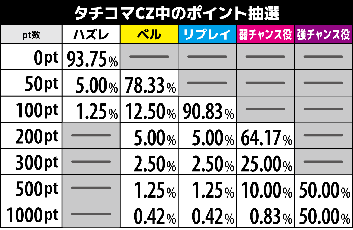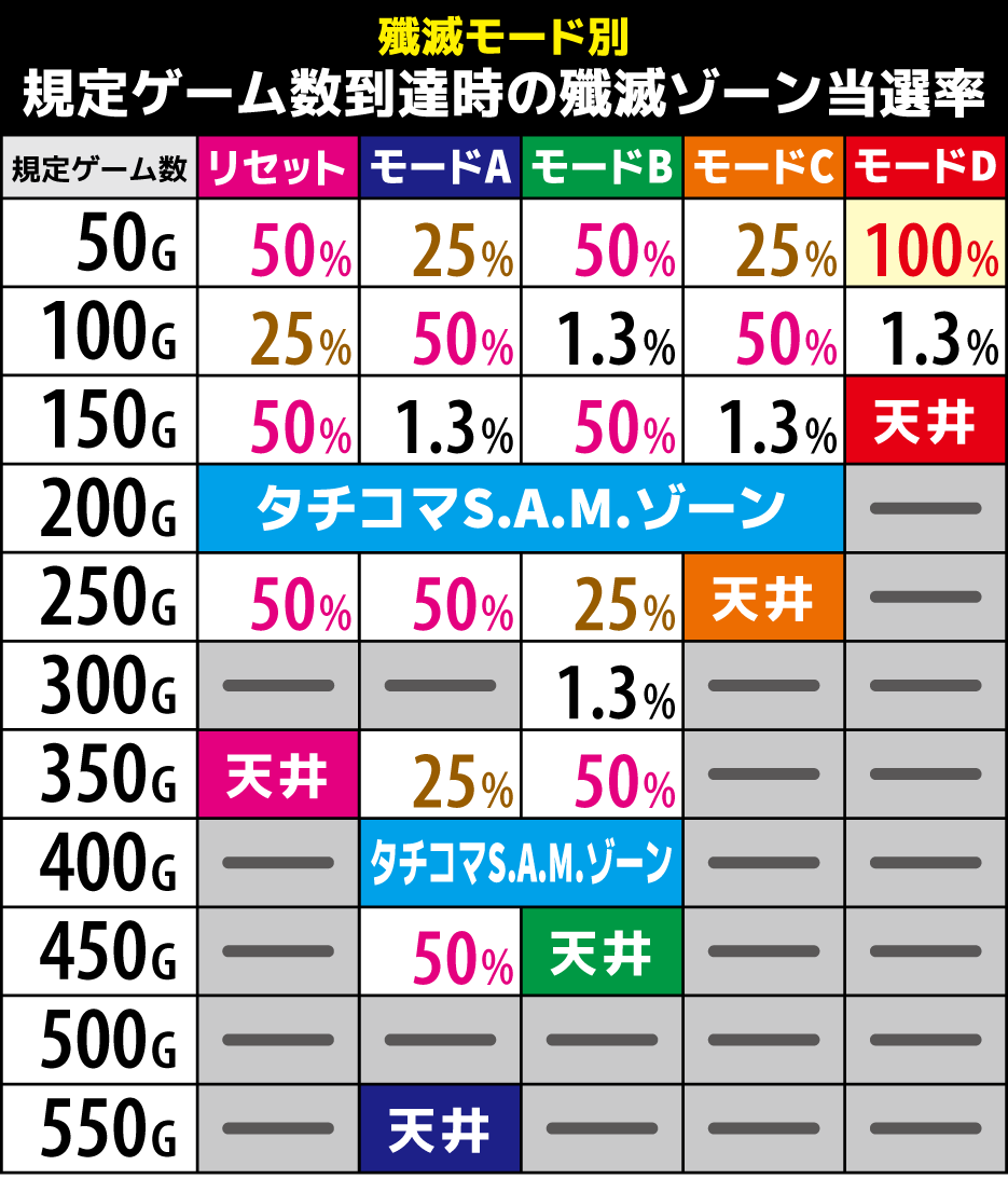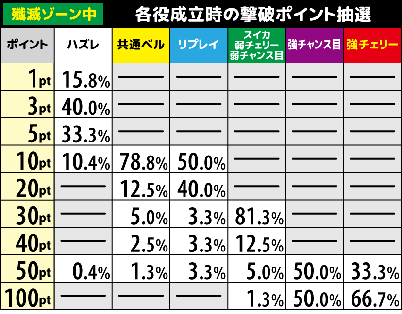 | 殲滅テーブル | CZ当選までの殲滅ゾーンは 殲滅テーブル2以上 |