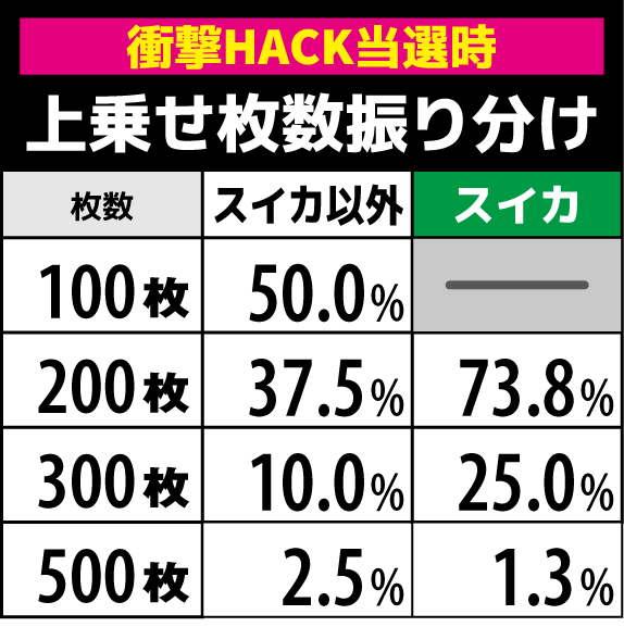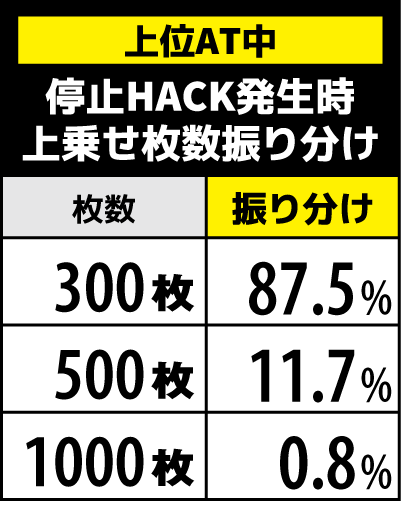 停止HACKは青ベルナビの0.4%で抽選。発生時は最大1000枚まで上乗せする可能性がある。