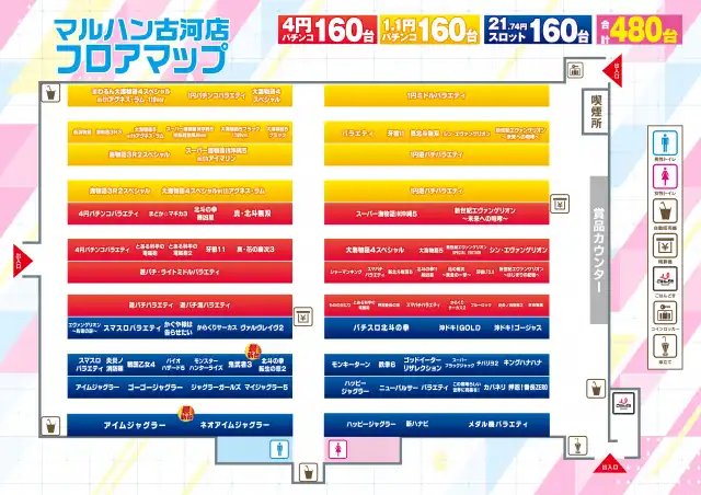 | 稼働台数 | パチンコ320台 / パチスロ160台 |