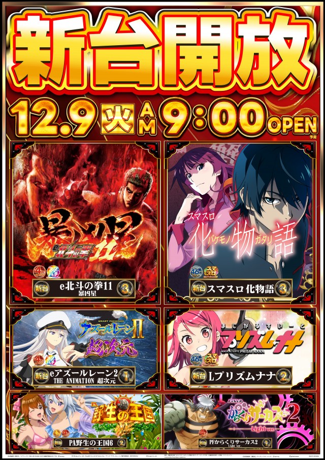 | 営業時間 | 09:00 ~ 22:45(定休日:新台入替日の前日) |