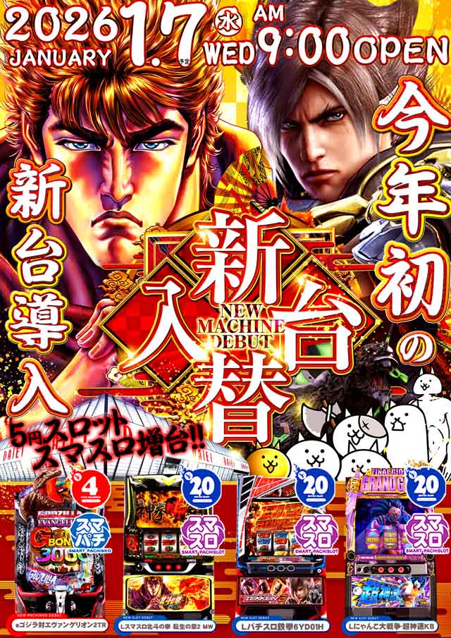 | 稼働台数 | パチンコ424台 / パチスロ264台 |