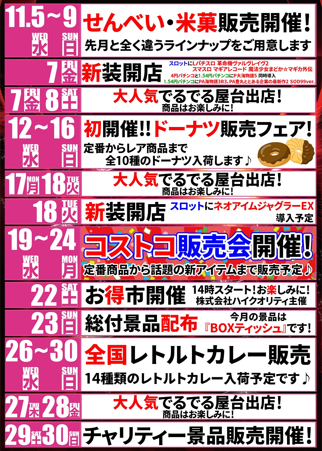 | 稼働台数 | パチンコ240台 / パチスロ128台 |