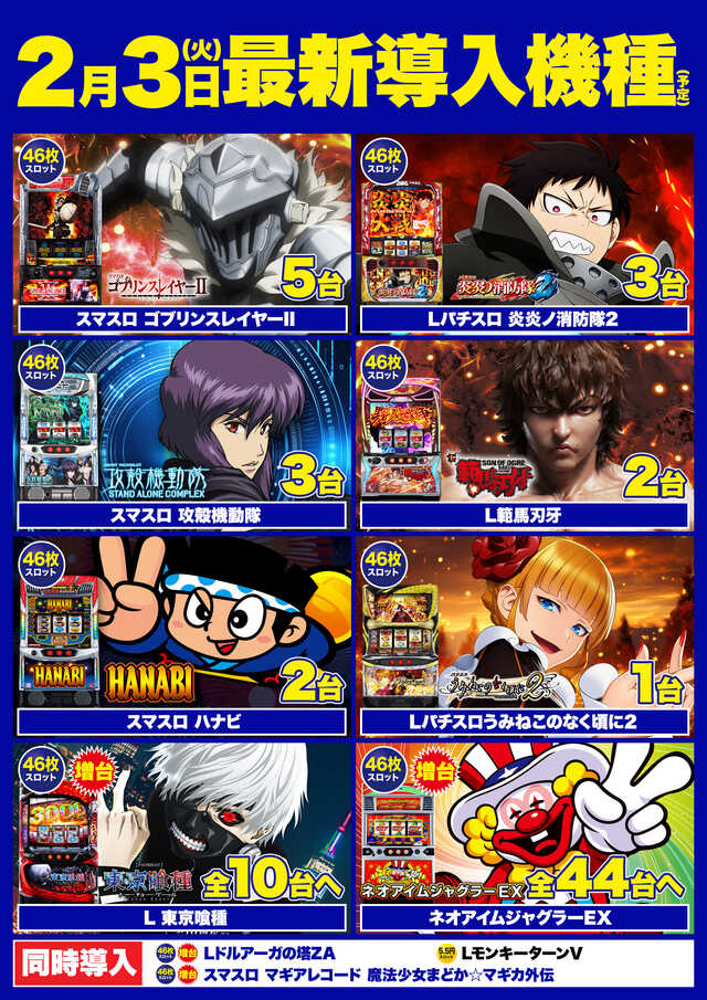 | 稼働台数 | パチンコ620台 / パチスロ373台 |