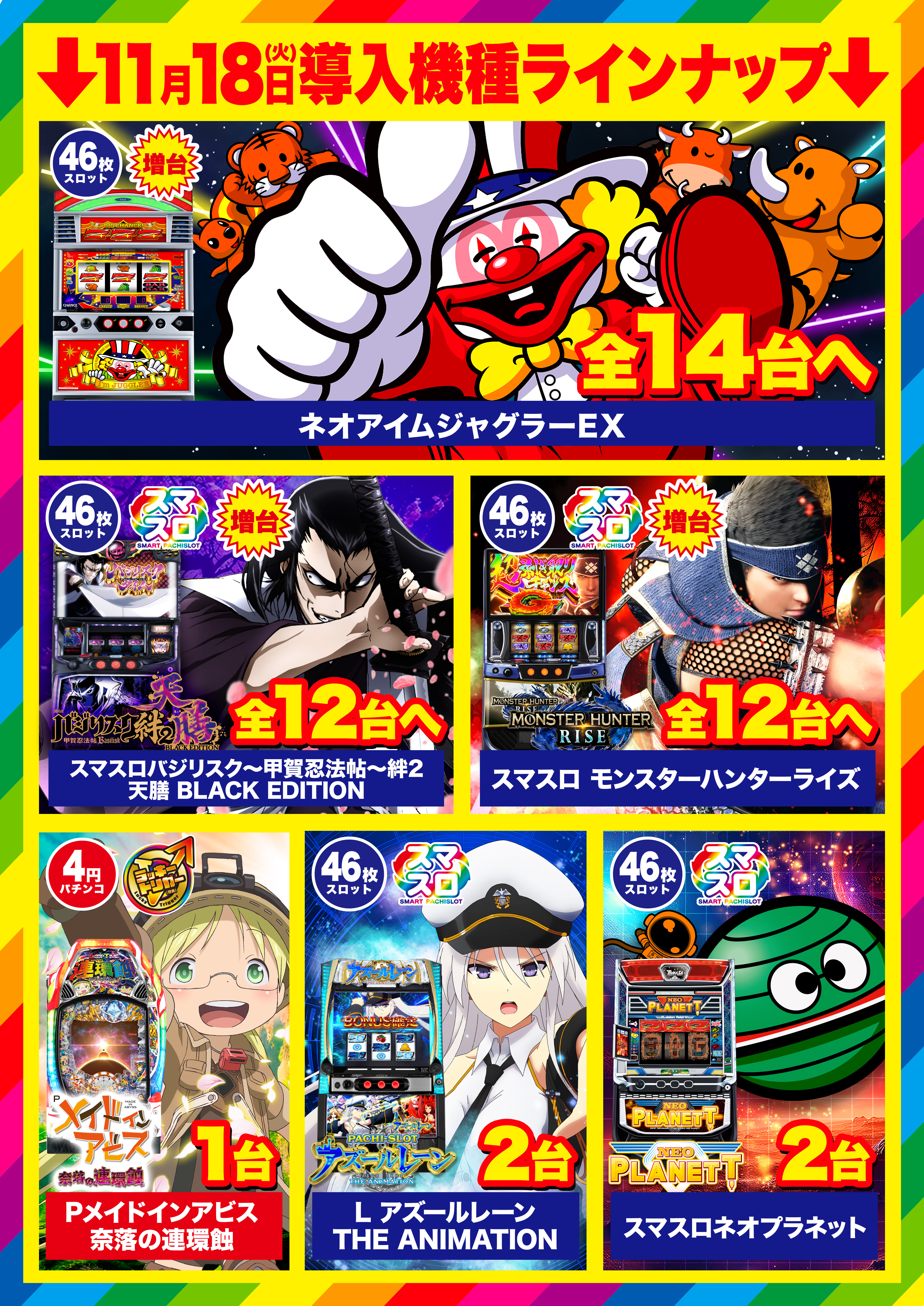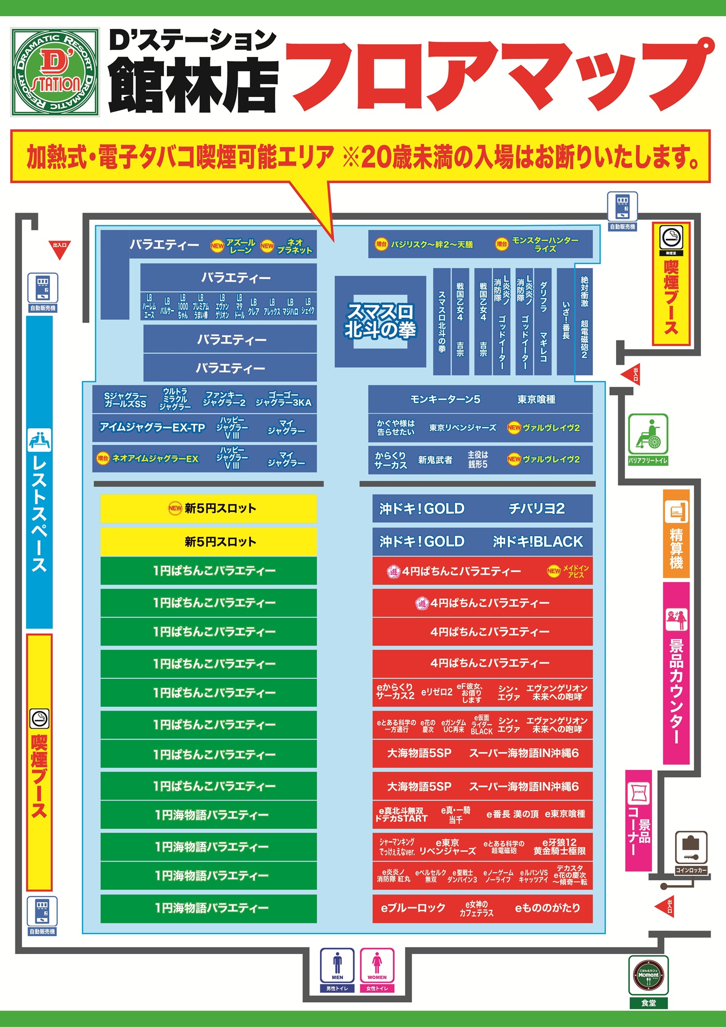 | 稼働台数 | パチンコ480台 / パチスロ408台 |