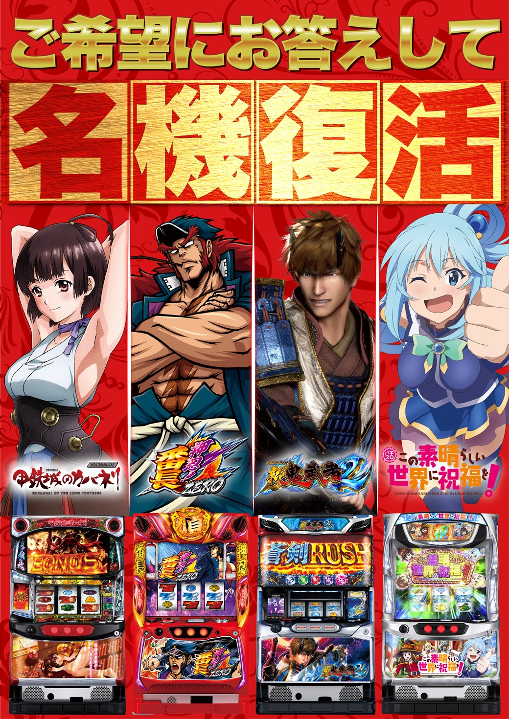 稼働台数 | パチンコ480台 / パチスロ408台 |