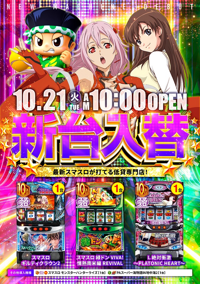 | 稼働台数 | パチンコ216台 / パチスロ144台 |