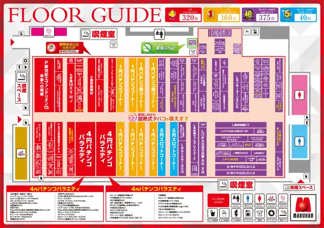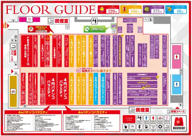 | 稼働台数 | パチンコ480台 / パチスロ415台 |