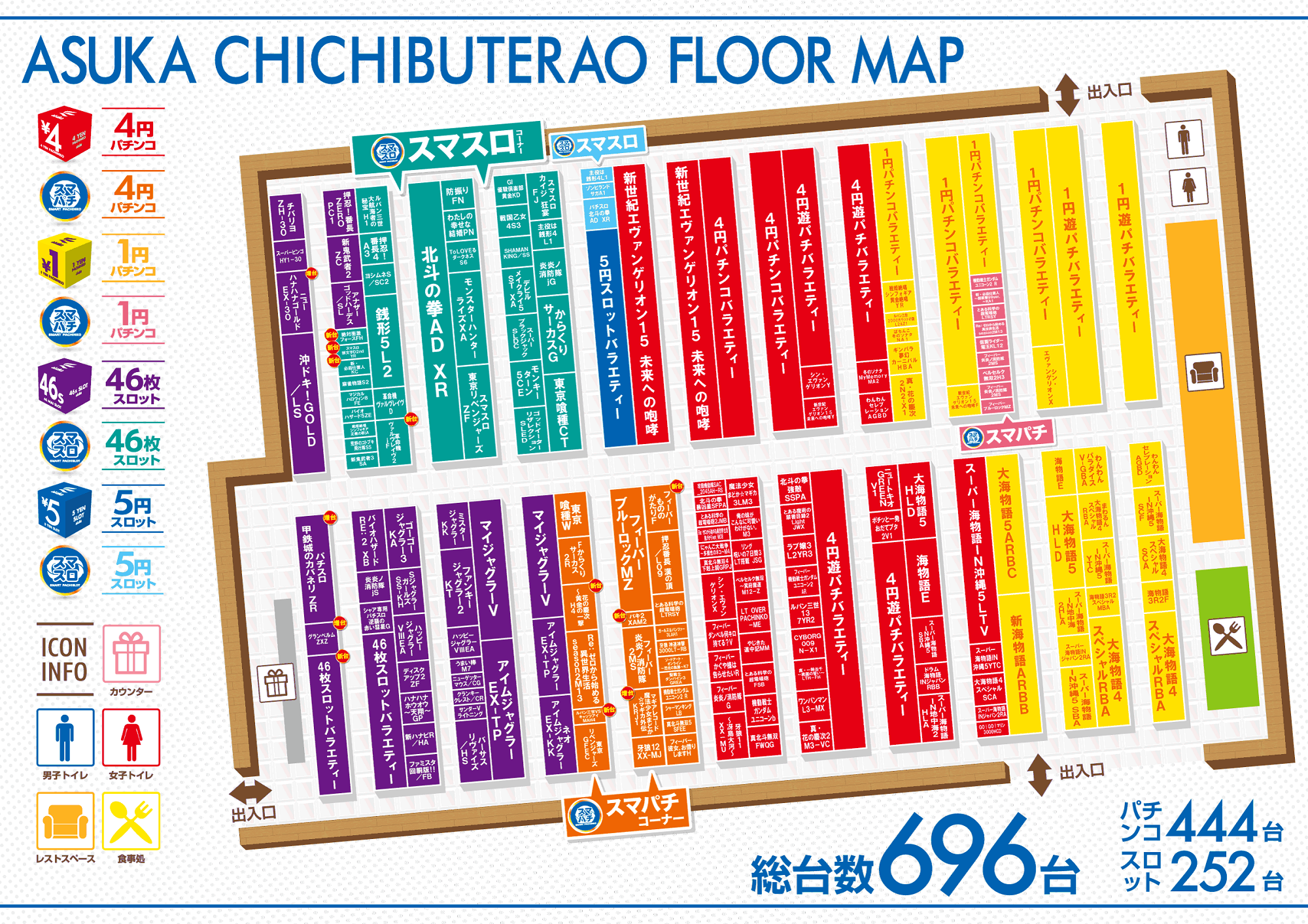 | 稼働台数 | パチンコ444台 / パチスロ252台 |