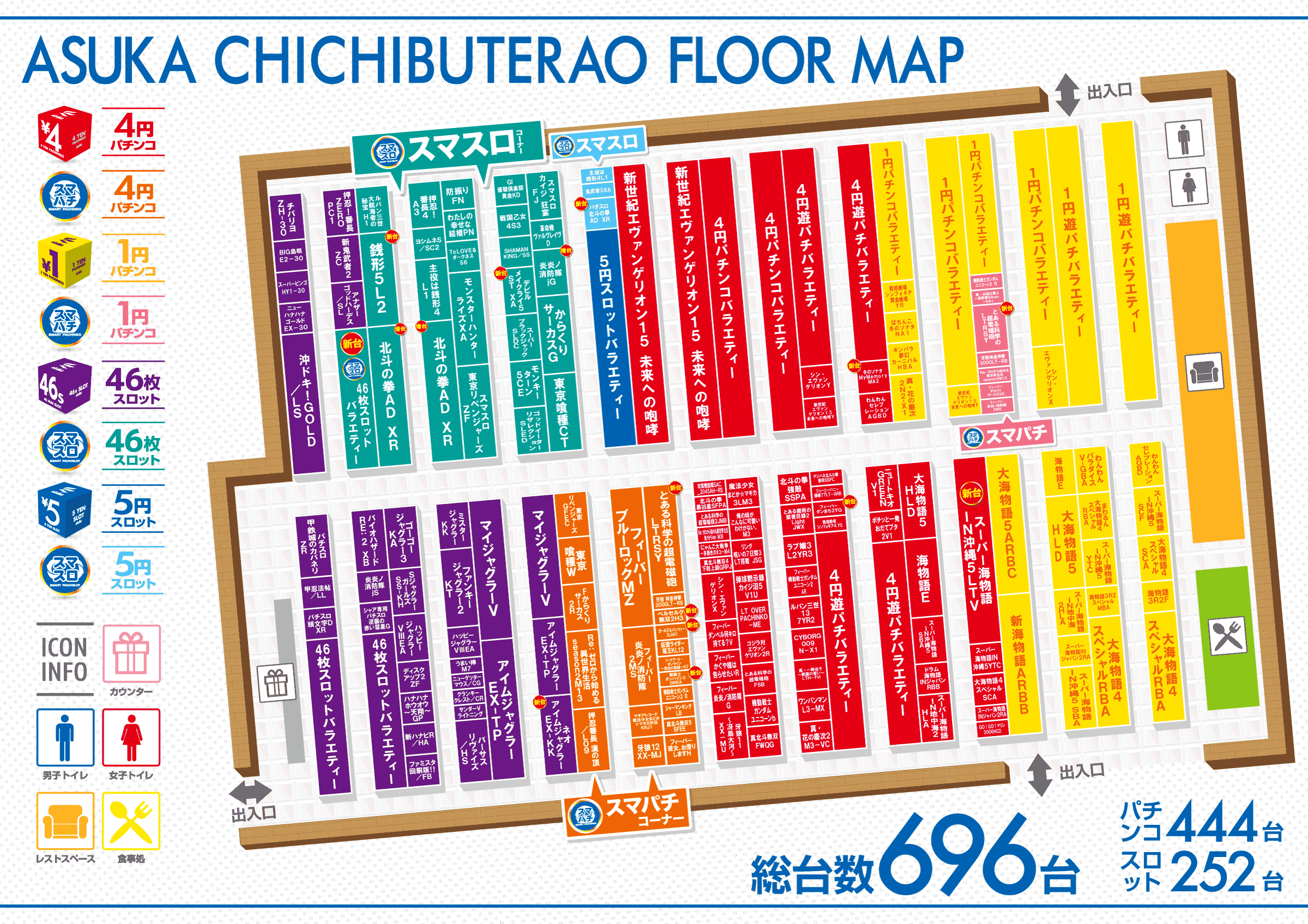 稼働台数 | パチンコ444台 / パチスロ252台 |