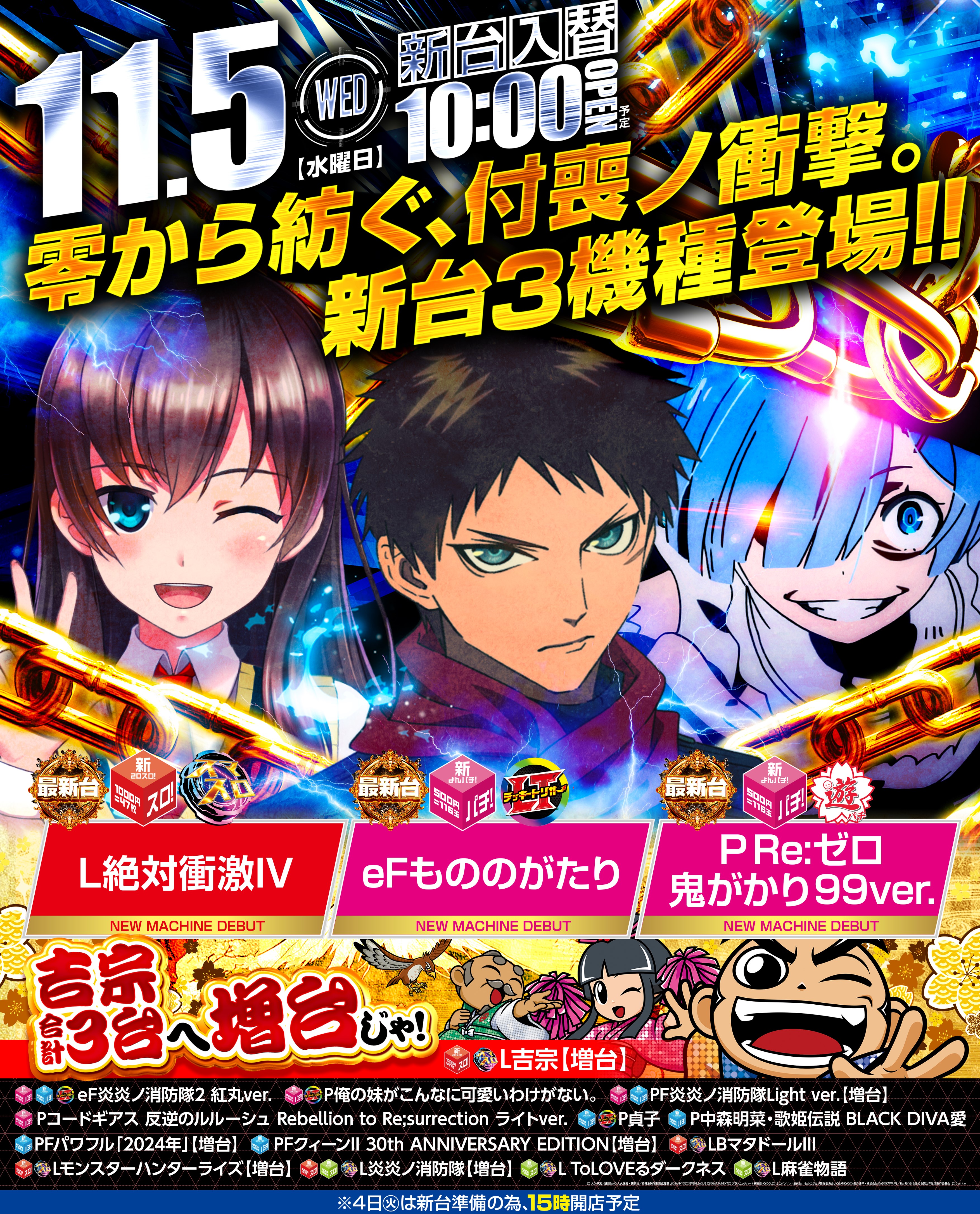 | 営業時間 | 10:00 ~ 23:00 遊技終了は22:45となります。 |