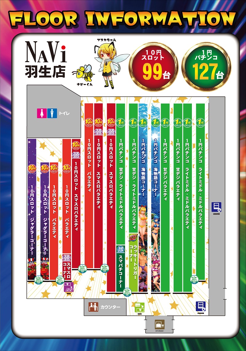 | 営業時間 | 10:00 ~ 22:30(定休日:新台開店日前日は店休日です。) |