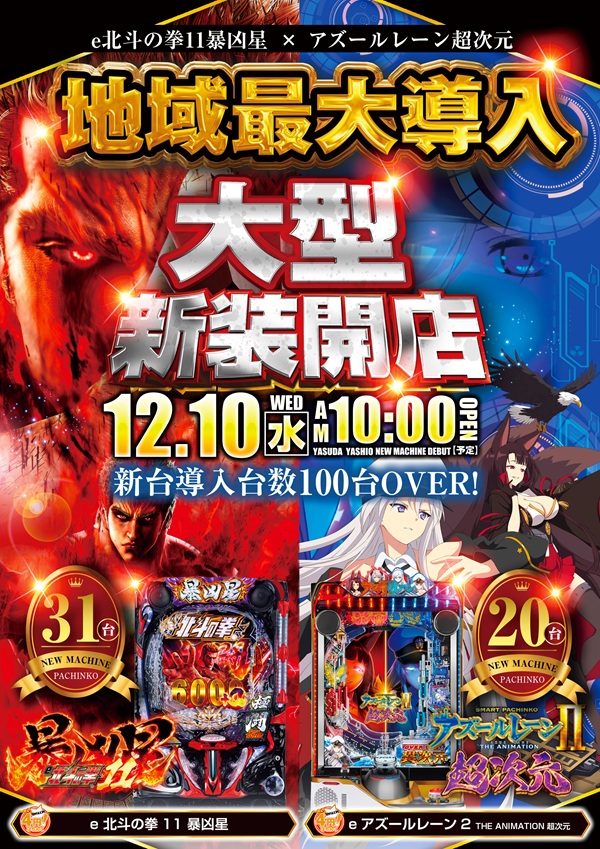 | 営業時間 | 平常営業日 10:00~23:00 (遊技終了時間 22:40) |