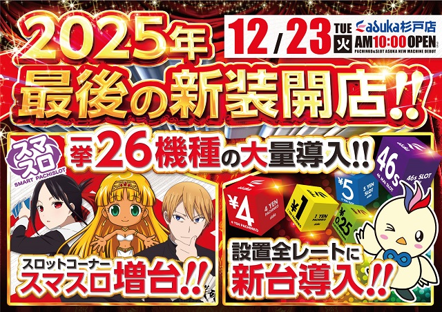 | 営業時間 | 10:00 ~ 22:45(定休日:年中無休) 新台検査日は13時開店予定となります |