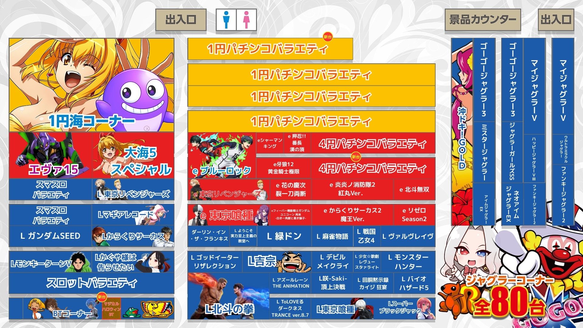 稼働台数 | パチンコ258台 / パチスロ196台 |