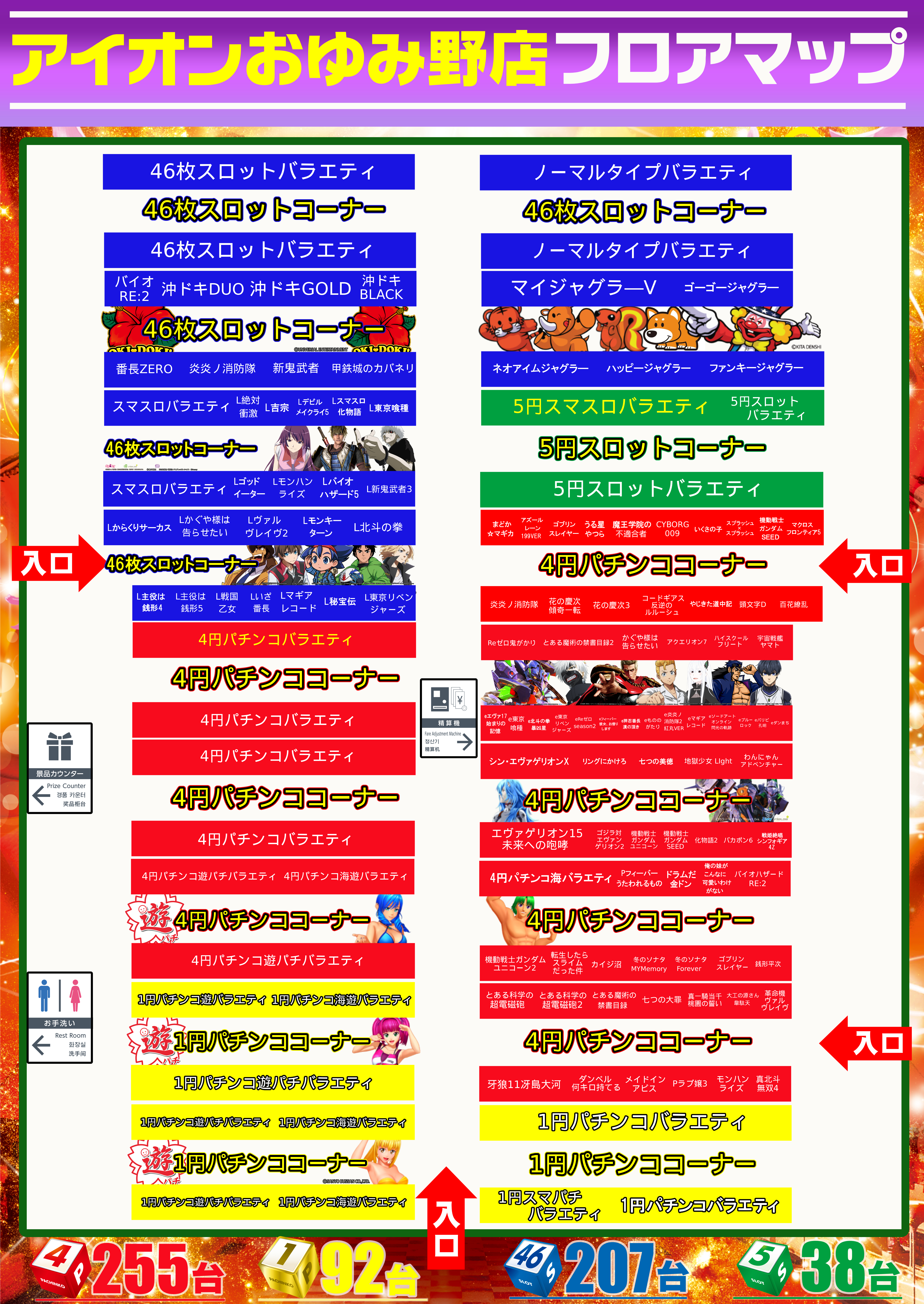 | 稼働台数 | パチンコ347台 / パチスロ245台 |