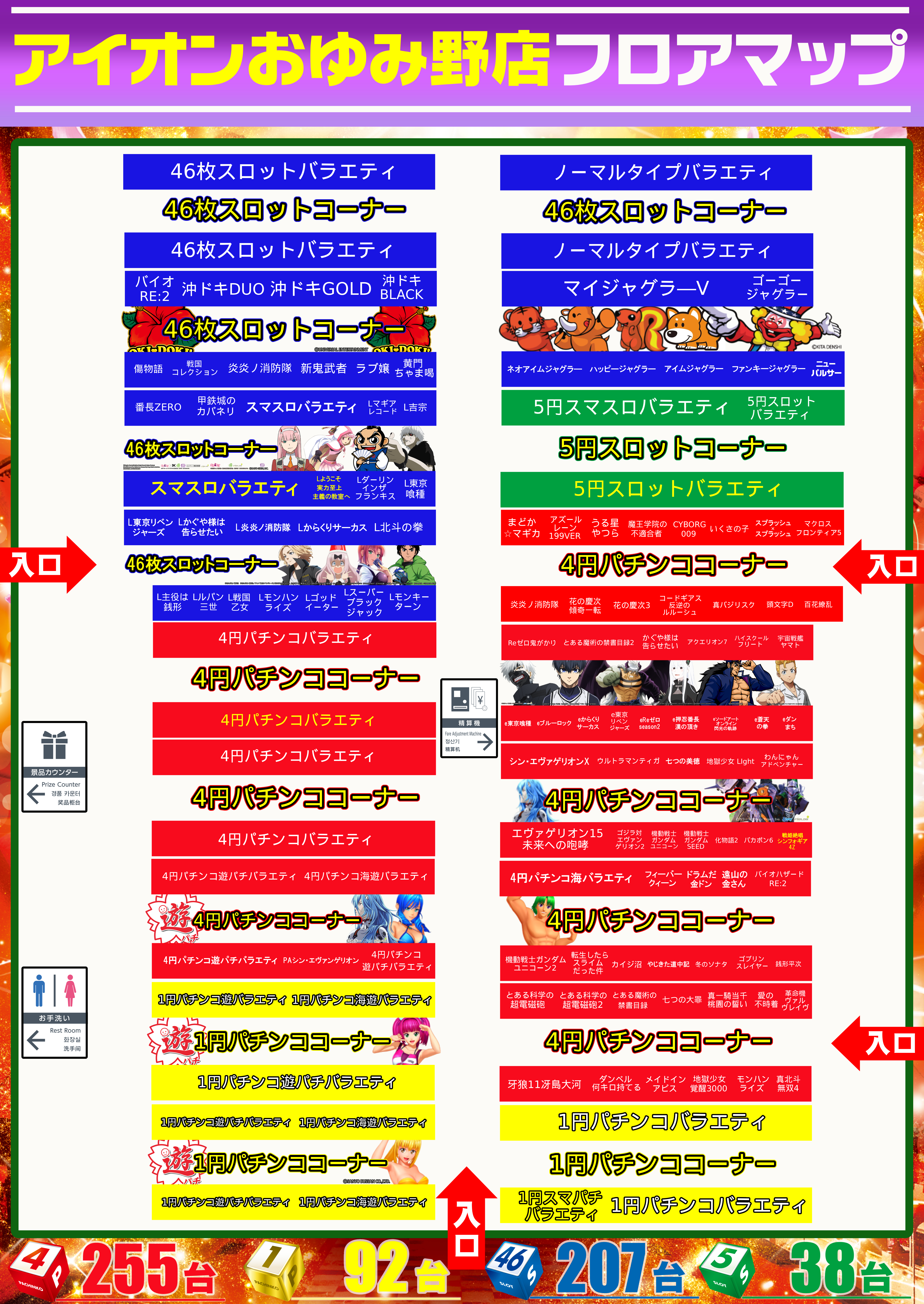 稼働台数 | パチンコ347台 / パチスロ245台 |